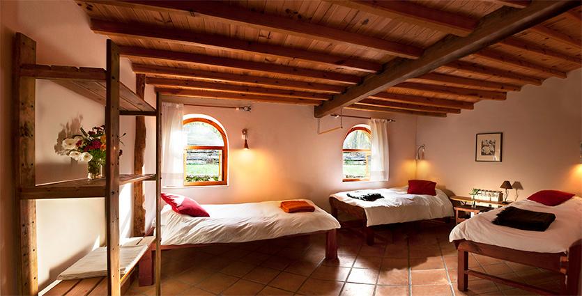 El centro dispone de un albergue acogedor y sencillo, con habitaciones dobles, triples y comunes, todas equipadas con calefacción y ropa de cama. Un entorno cálido y compartido que favorece la convivencia y el descanso durante el retiro.